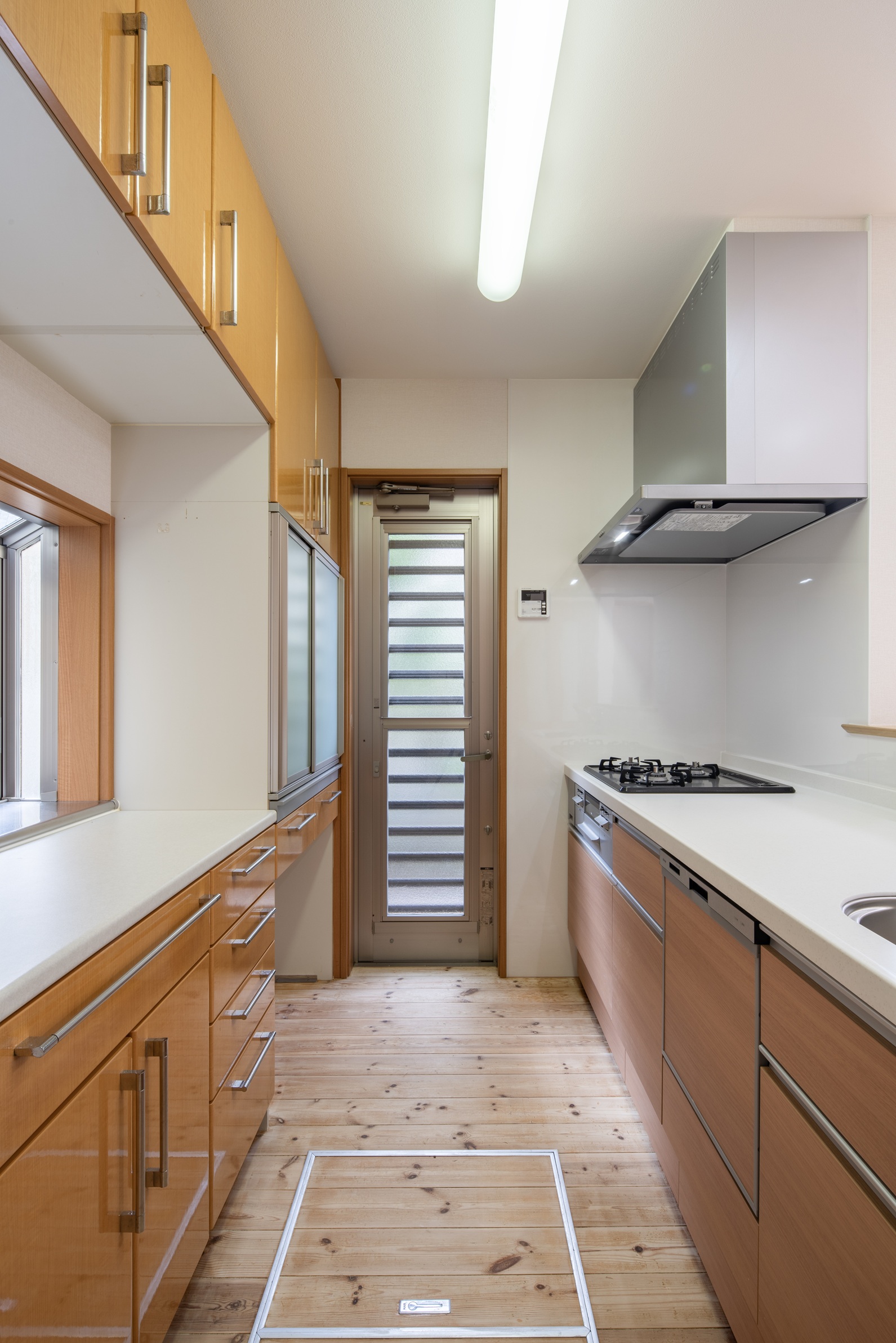 主として、水気の多い洗面・脱衣に使用。湿気に強く、菌の繁殖を抑えます。白く美しい木肌に機能美を兼ねた備えた床材です。